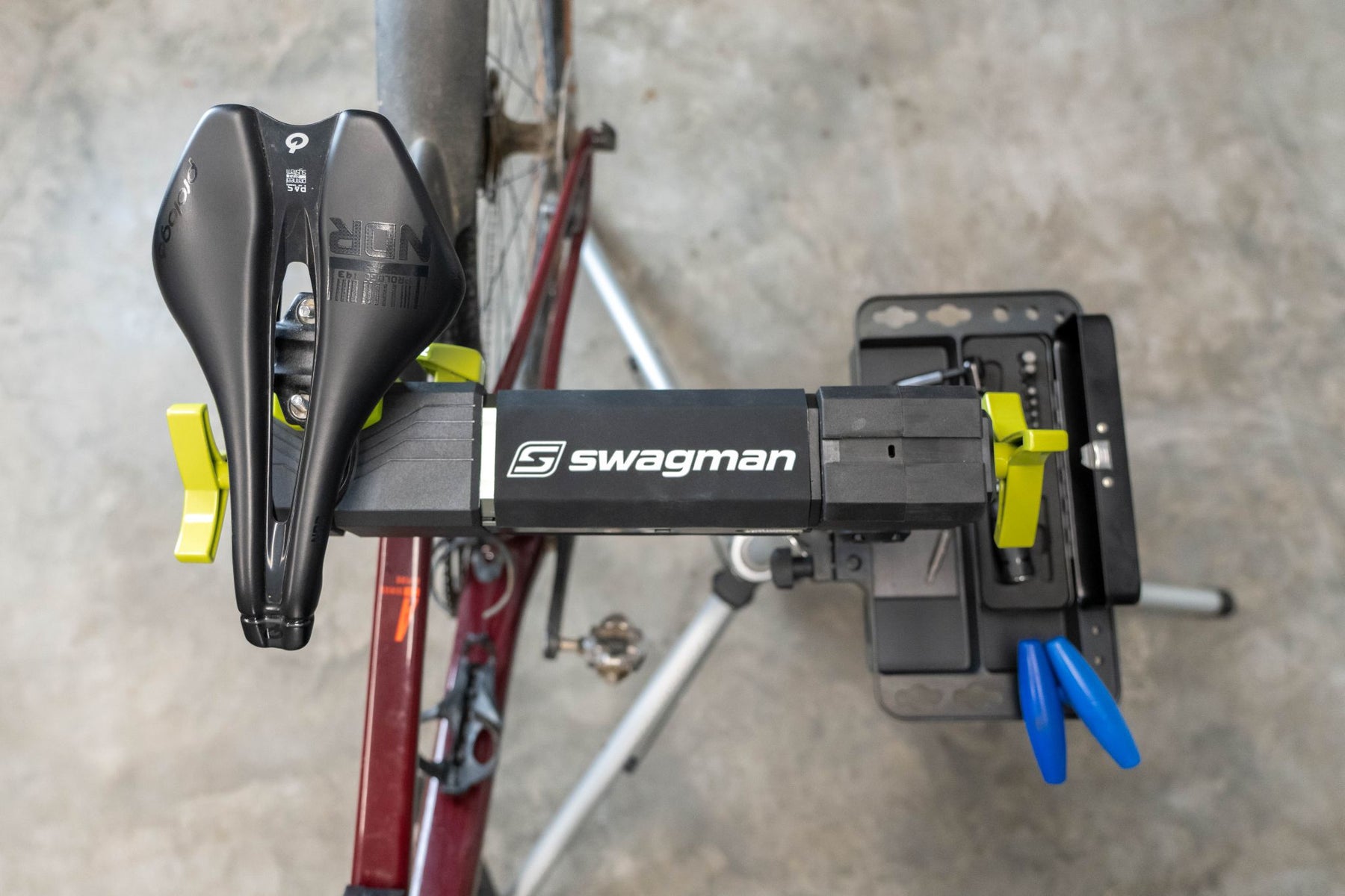 The Swagman SpinDocktor is a portable bike stand that makes maintenance and storage easy. Its unique swivel-head design allows you to position your bike at the perfect angle for cleaning, repairs. It folds up into a small, easy to carry size and is easy to store when not in use. Compact and versatile, it’s a must-have for cyclists who want convenience at home repair stand.